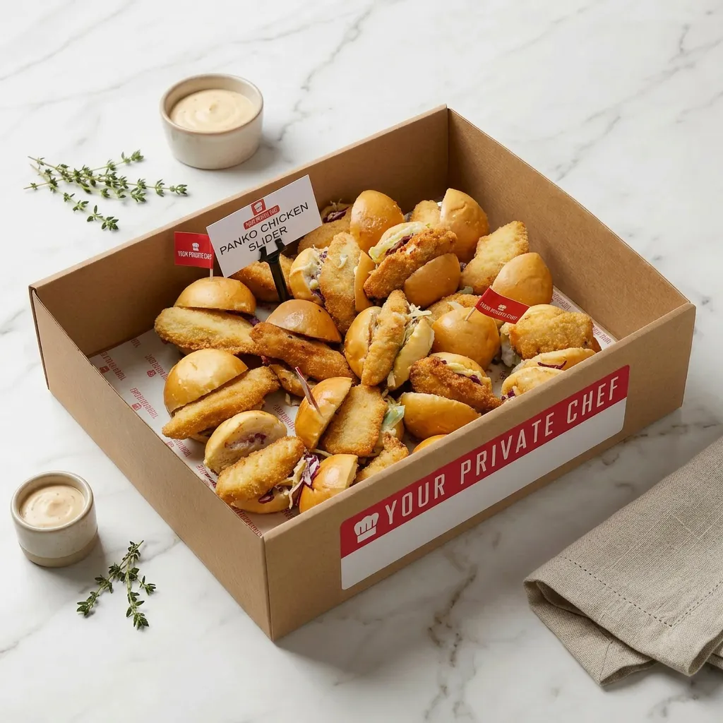 Brioche mini burger bun with crisp chicken and chipotle mayo slaw