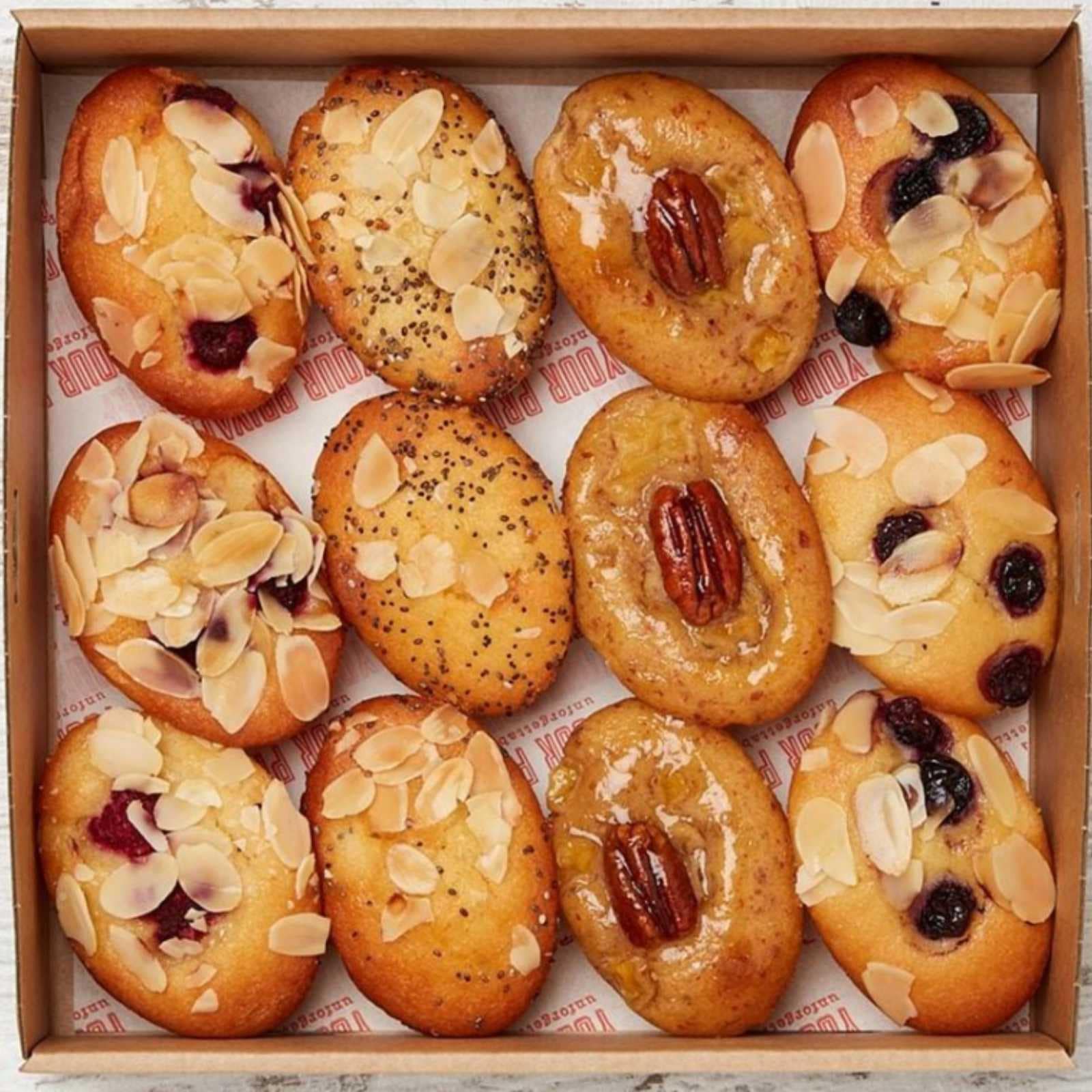 Gluten free Blueberry friand (3) Gluten free Lemon & Rosemary friand (3) Gluten free apple, maple & pecan friand (3) Gluten free Chia, orange & poppy friand (3)