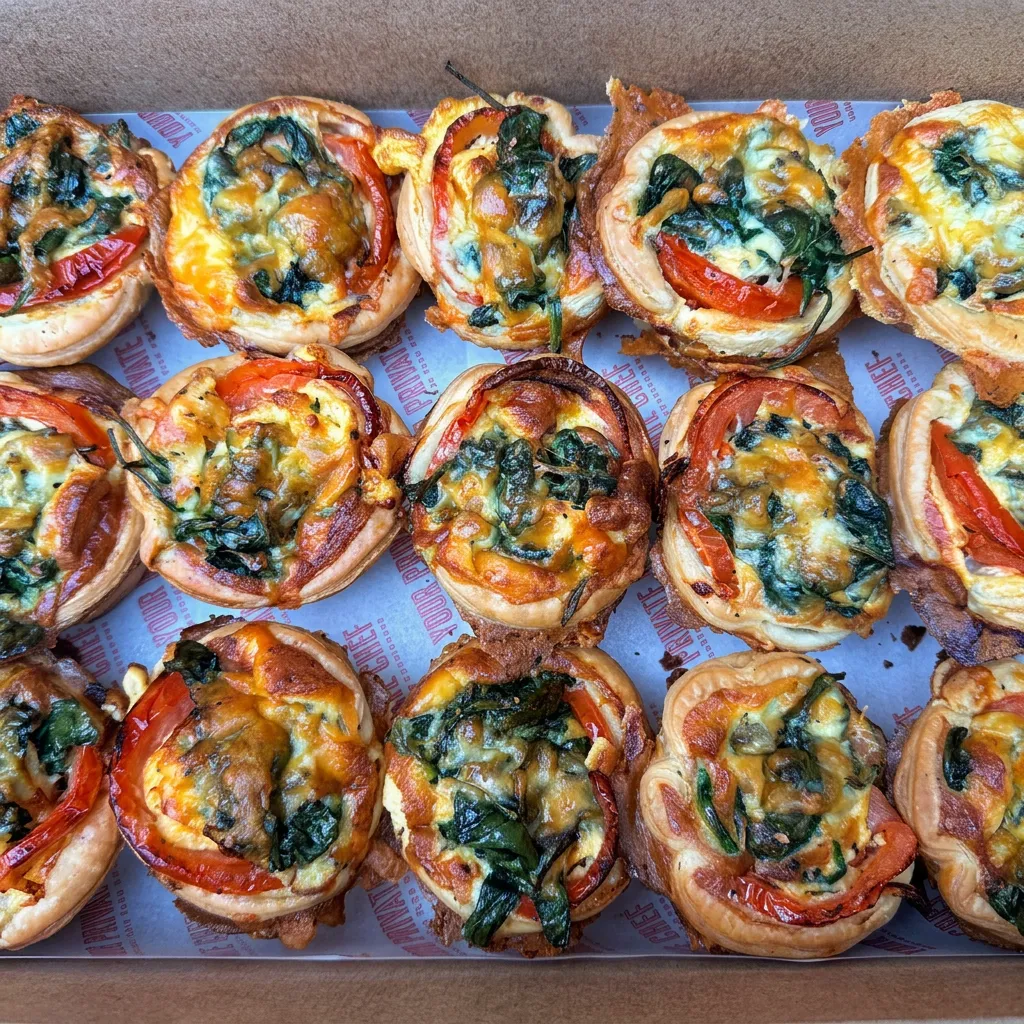 $4.88 per box, 12 pieces Large Rustic vegetarian baby spinach, cheese and tomato individual tarts (12 pieces)