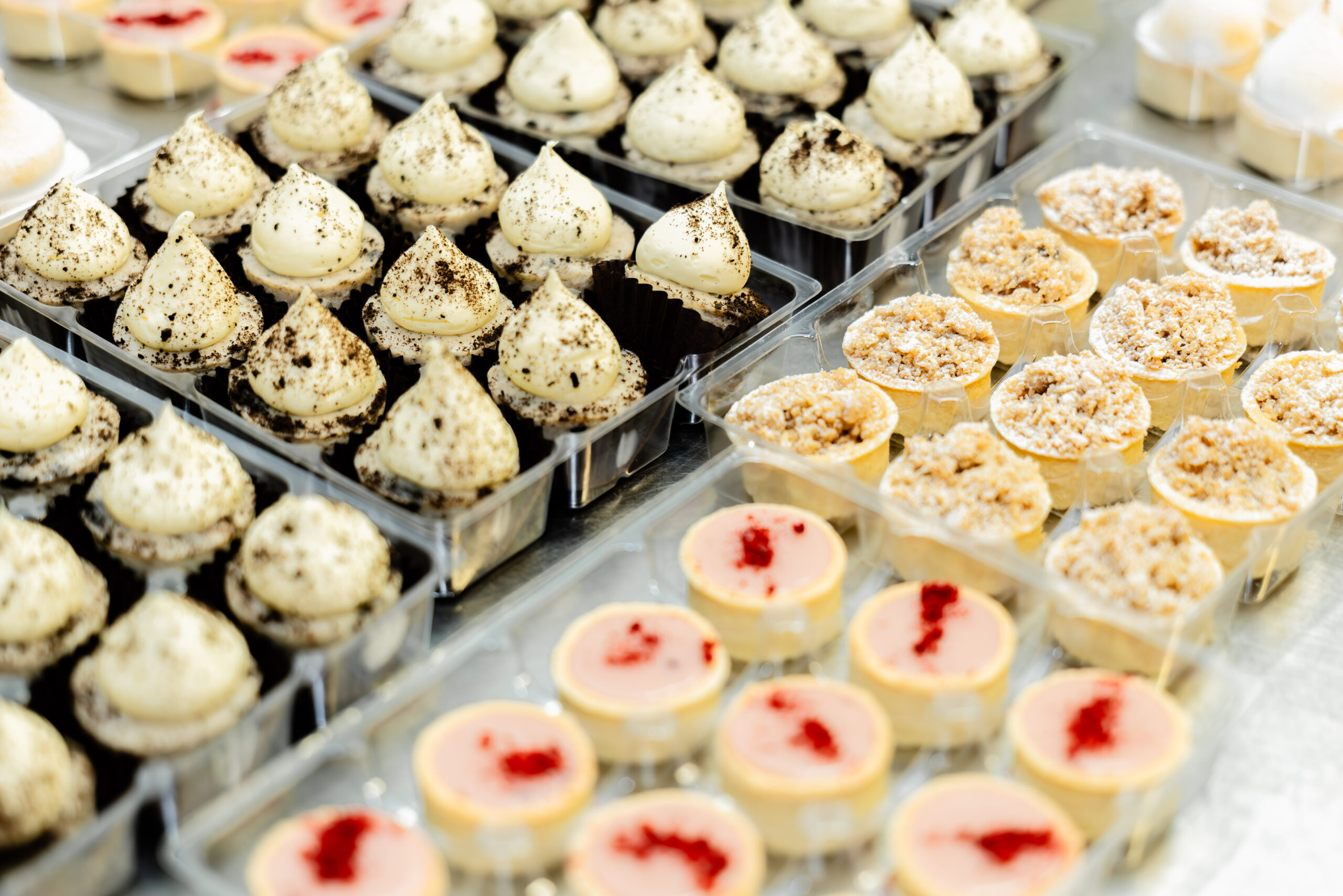 20 delicious baby cupcakes platter in these gorgeous flavours: Passionfruit Curd Raspberry Curd Lime Curd Chocolate Praline Lemon Curd Caramel Fudge