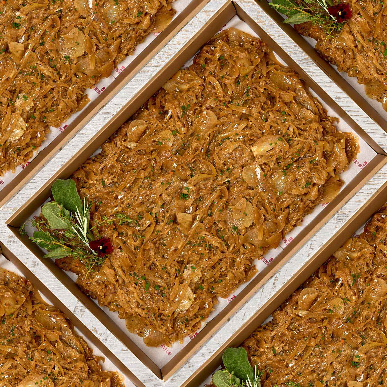 Caramelised onions, ketchup, BBQ sauce, and seeded mustard
