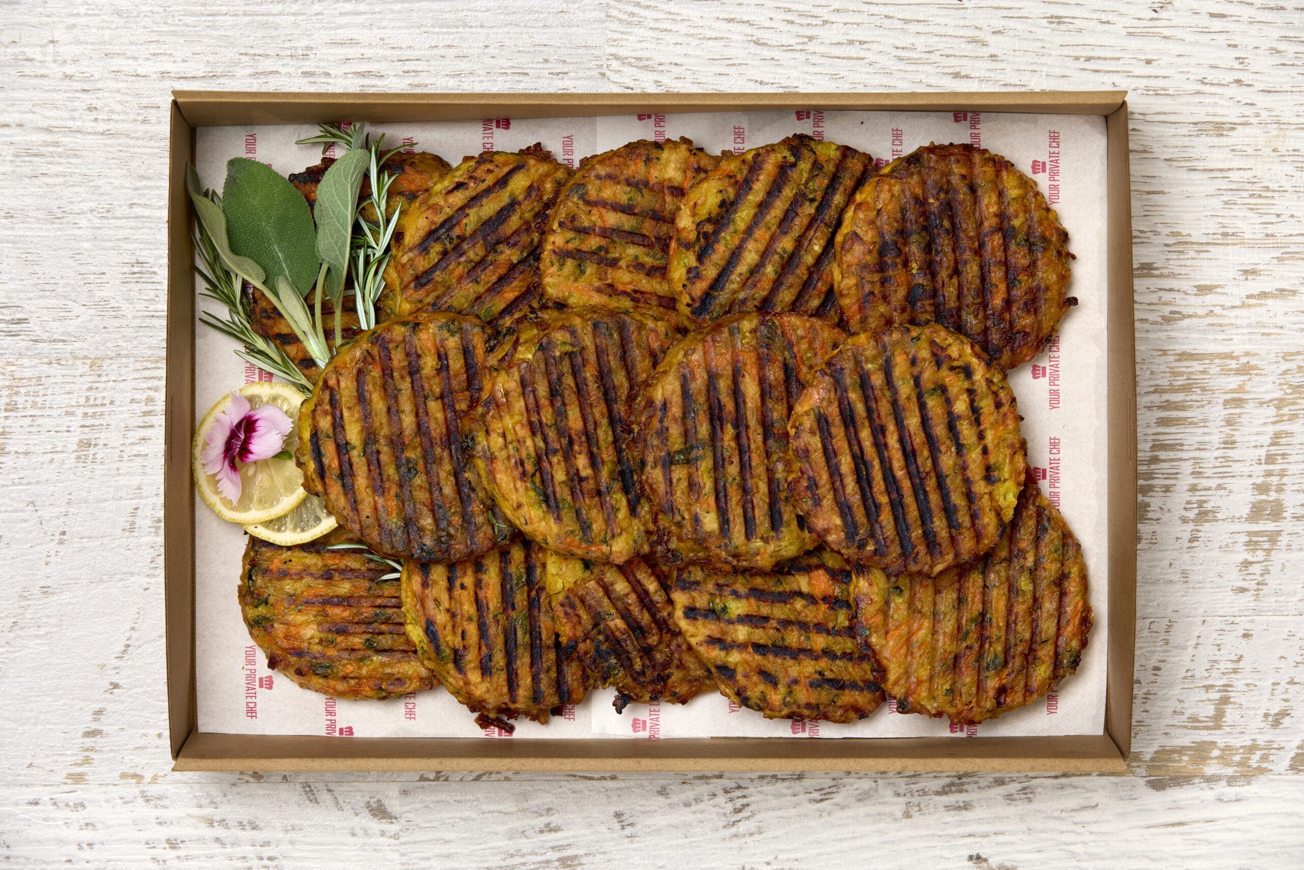 $146 per platter, 12 pieces Platter – Black bean, pumpkin & red lentil patties (vegan, gf) (12 piece)