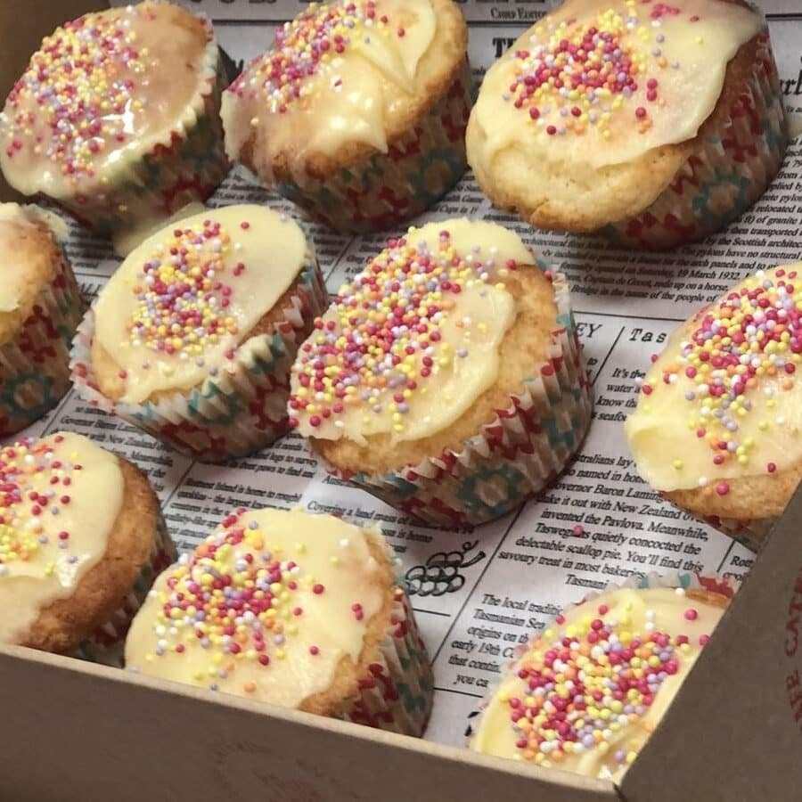 Gluten Free Classic vanilla cupcakes topped with buttercream icing & 100’s and 1000’s
