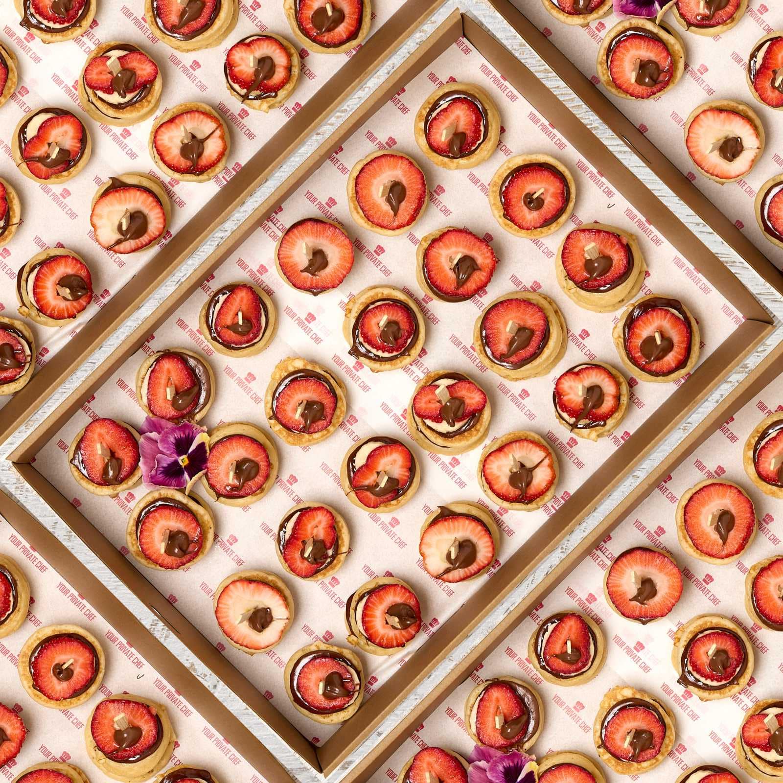 Platter – Mini Nutella Pancake Skewered with strawberry & sliced banana (24 pieces) *Contains NUTS