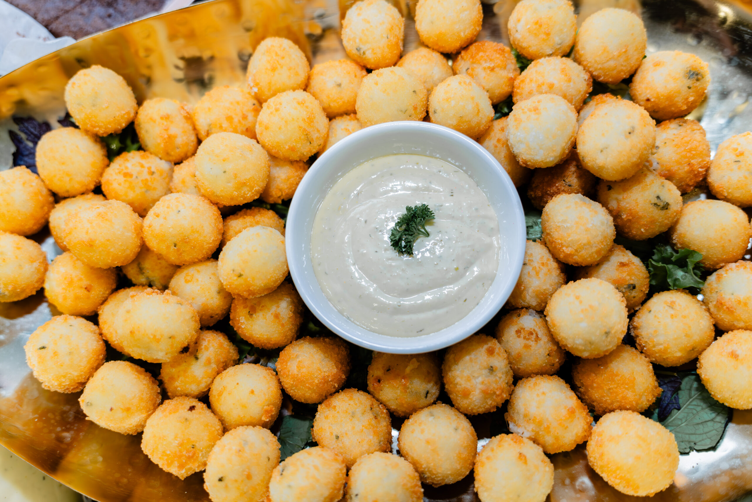 Golden, crispy arancini filled with a rich blend of three cheeses and creamy risotto rice. Perfectly balanced with a crunchy exterior and a soft, indulgent centre, these gluten-free vegetarian bites are a comforting and crowd-pleasing canapé.