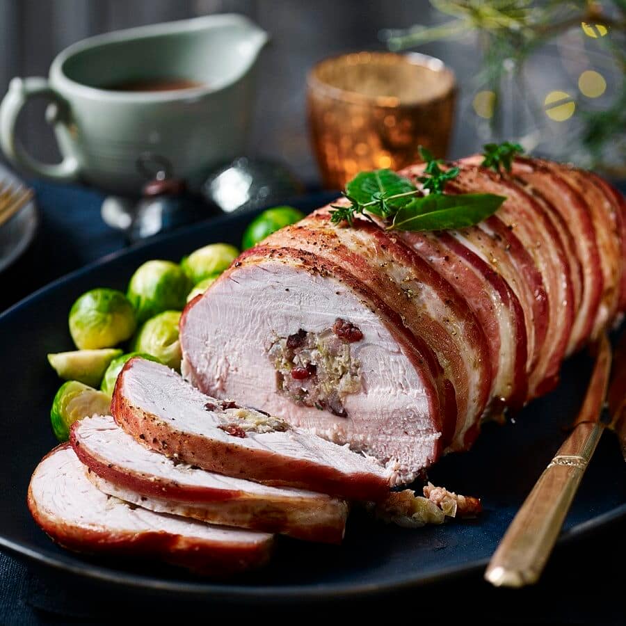 Turkey breast roll stuffed w/ panko crumb, cranberry, sage & onion. 3kg.